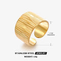 Crafted from durable 304 stainless steel and beautifully 18K gold plated, this ring is designed for lasting quality and a luxurious finish. It is also available in a sleek silver finish. Weighing 4.8g, this ring is substantial yet comfortable, making it perfect for everyday wear or for adding a chic touch to your evening attire.