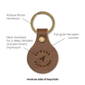 Heat-stamped into premium full-grain leather, the bold graphic creates a strong and lasting impression, much like the impact you make every day. Featuring antique brass hardware and a heat-stamped, double-sided design, these keychains are rugged and built to last.