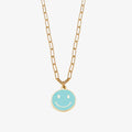 You'll be all smiles when you rock this smiley face necklace! This friendly face is hand-filled with teal enamel and hangs from a paper clip style chain. Proudly crafted in Toronto.