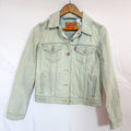 Meet our One-of-a-Kind Upcycled Jean Jacket, a true showstopper for your wardrobe. We've taken a classic Levi's denim jacket (size small) and given it a whole new life. The front features a light wash with subtle, tonal floral embroidery on the sleeves, while the back is a beautiful surprise: a handmade quilted panel.