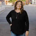 Meet your new go-to sweater! Designed for ultimate comfort, this waffle knit sweater feels like a warm hug and is the perfect blend of lounge and laid back style. It has a relaxed fit and elevated details (of course!) Raglan sleeves, a V-neck, side slits just like our best selling Dusk Sweater, and a high-low hemline. Whether you're unwinding at home or heading out for a casual day, this cozy essential will be your everyday favourite.