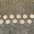 A small and dainty zodiac coin hangs on a delicate 16K gold plated brass chain making a simple but elegant statement. The perfect layering piece or minimalist necklace.