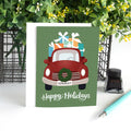Celebrate the magic of the winter season with our delightful Christmas card! Featuring a charming vintage truck loaded up with presents, this card captures the nostalgic spirit of the holidays. The playful design and hand-lettered greeting wish the recipient a happy holiday filled with joy and warmth.