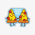 Wrap a 'piece of your heart' up in some cheesy goodness with this You Have A Pizza My Heart Sticker. Featuring two pizza slices showing off their melty love, it's a fun play on words that adds fun and quirk to any surface! š
