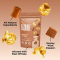 Whisky on the Pops Caramel Popcorn offers a refined snacking experience with its unique blend of smooth Scotch whisky-infused caramel, enhancing air-popped whole-grain popcorn with smoky, peaty notes. Each kernel is coated and baked to achieve a captivating crunch, making it a standout choice for gourmet popcorn lovers.